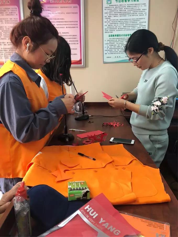 志愿者早早来到社区布置好场地,准备好材料。志愿者们热情地向老人们介绍了本次活动的内容,并展示了今天学习的样品图。接着从折、画、剪三个方面给老人一一细心地引导。从挑选纸张的颜色,到小心翼翼的修剪,每一个步骤都十分细心。考虑到个别老人年纪较大,志愿者在折好的纸上面为其画好线,鼓励老人慢慢剪。每一件作品的完成都灌注着大家对剪纸的喜爱之情。