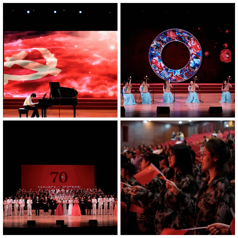 “不忘初心跟党走、倾情颂歌献祖国”庆祝庆祝新中国成立70周年音乐会。校党委副书记曹仁清,纪委书记邱卫东与2019级新生军训教官及五百余名师生欢聚一堂,向祖国深情告白。