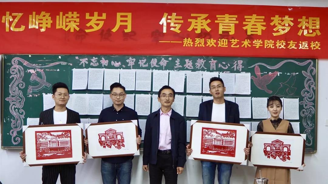 党总支副书记李海波为校友们送上了剪纸社的同学们制作的剪纸。