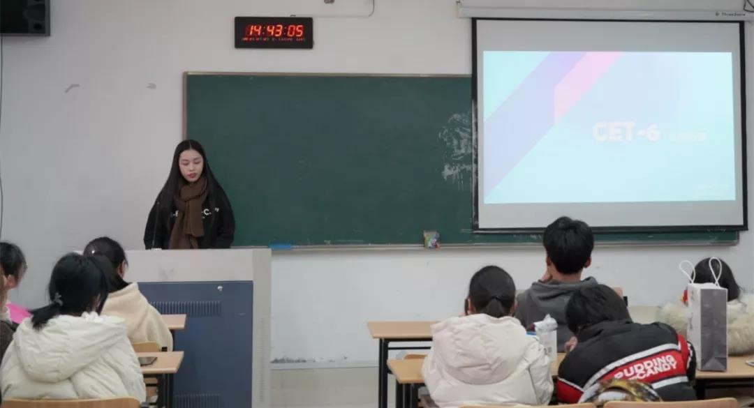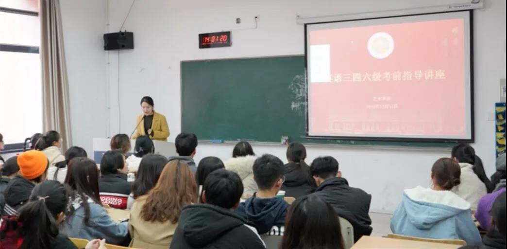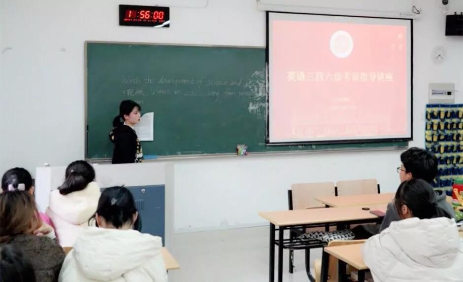 于12月12日下午在品院A216举办了英语三四六级考前指导讲座,由音乐学专业的林可萱、国际商务专业的黄覃韵如和李冬梅主讲。讲座由麦田影院