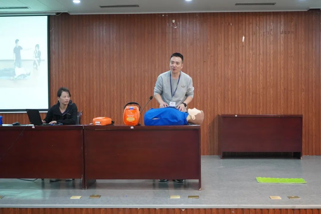 同日下午在博文堂二楼开展了紧急救援讲座,蒋利红、沈俊老师主讲。老师们通过案例的形式,向同学们普及了科学的救助技巧,并讲解了应急救援现场的基本步骤,通过演示和互动,让同学们更深刻认识到在遇到紧急情况时,该如何展开自救互救。