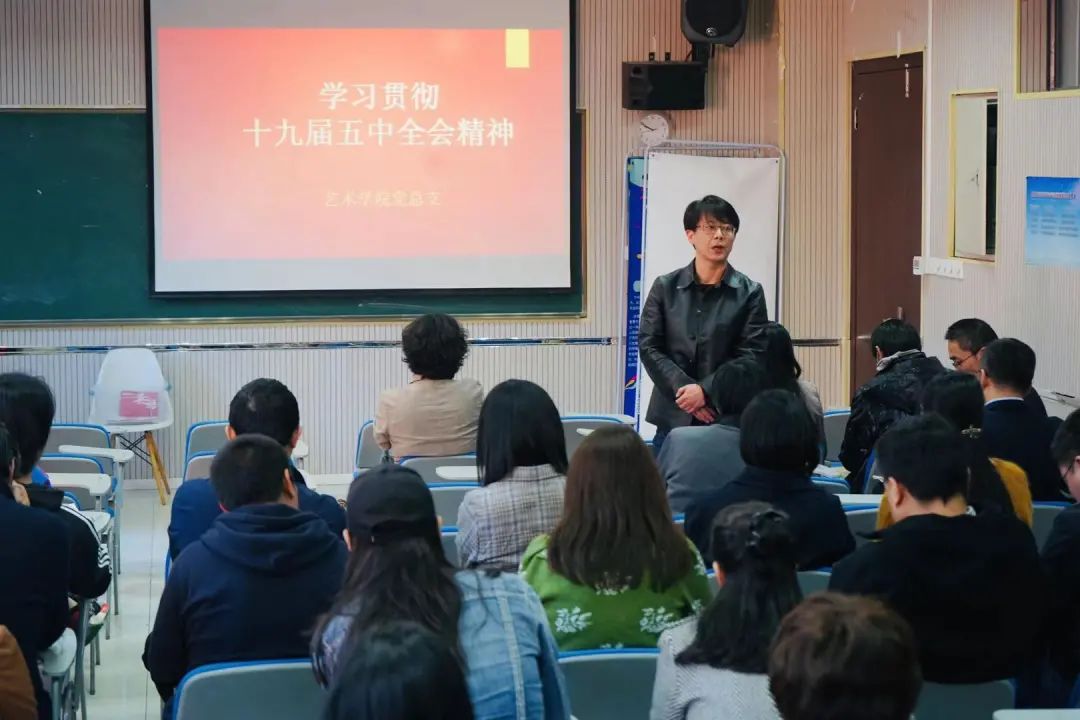 党总支书记杨飞群谈到,十九届五中全会是在“两个一百年”奋斗目标历史交汇点上召开的一次重要的会议,擘画的新发展蓝图催人奋进。学院党总支要把十九届五中全会精神学习好、贯彻好,把全会精神真真正正转化为推动学校学院发展的强大动力。全院各支部、各系要全面认识、深刻把握十九届五中全会精神,迅速掀起学习宣传贯彻全会精神热潮,推进全会精神入脑入心,师生员工自觉把思想和行动统一到全会精神上来。党员教师要发挥好表率作用,牢固树立“立德树人”根本理念,真正用先进思想武装头脑、指导工作,为教育强国、文化强国和人才强国贡献智慧和力量。要结合“红色集结号”主题教育, 坚持“学在日常”,强化思想引领,开展好主题党日、“画说”和“音动”等形式多样、师生喜闻乐见的学习宣传宣讲活动。要将全会精神学习和十四五规划研制及推进各项重点工作结合起来,做好文化+,坚定文化自信,践行文化传承。