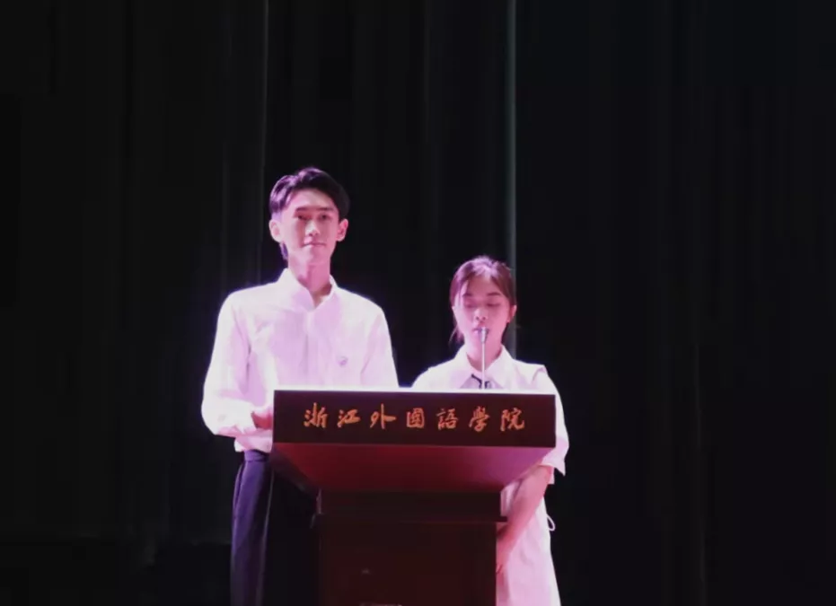 接下来是21音乐1班的於硕同学代表新生发言,她告诉大家作为一名合格的大学生要向青年时期的习近平总书记学习,呼吁大家树立奋斗目标并提高自身综合素养,共同营造团结友爱氛围。她希望同学们在大学独立生活中提升品质,在成长中寻找自我,展现勇敢。