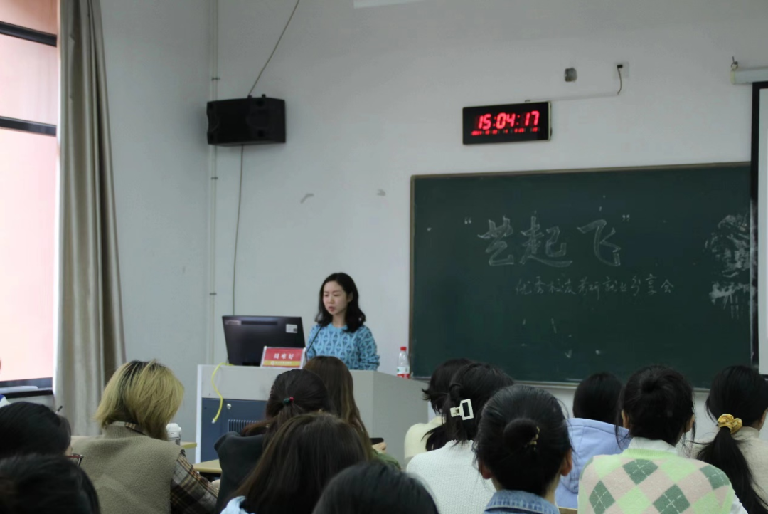 在品A216教室举行“艺起飞”考研就业经验分享会。此次分享会邀请了美术系2018届毕业生周唯好学姐为大家带来美术专业的考研及就业经验分享。