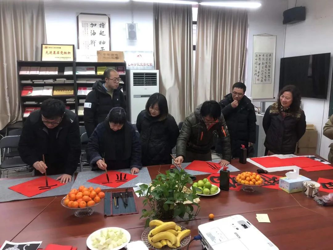 教师们积极参与活动,展现美好,送上祝福。美术系吴大红、王恺中、颜子茗老师为学院的教职工书写春联和福字。红彤彤的纸上,书写着苍劲有力的祝“福”,一幅幅充满美好寓意的春联在他们的墨下绽放!