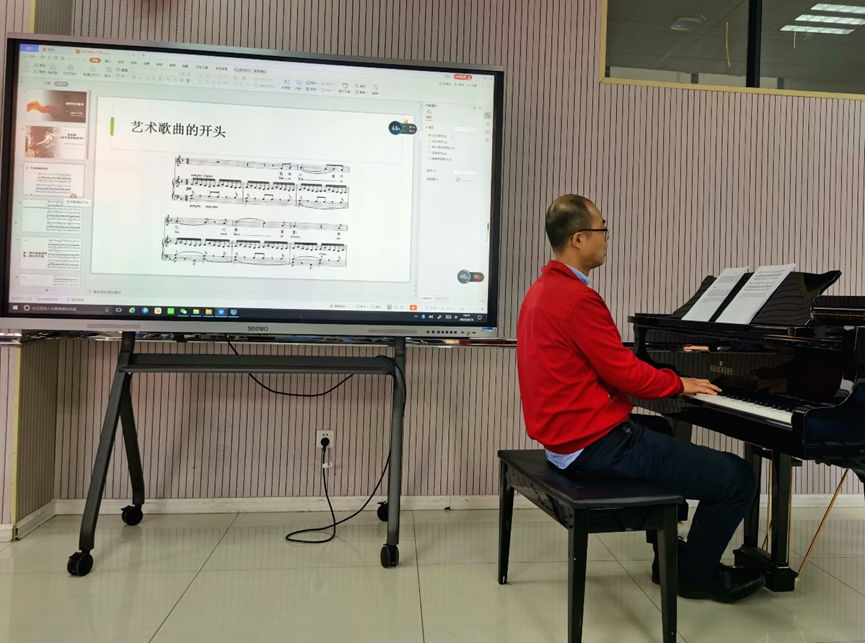 为了进一步提升任课教师课堂教学水平,加强专业教师队伍建设,全面贯彻学校加强本科教学质量监督,促进青年教师进一步掌握教育教学规律、熟练教学技能,我系于2022年4月14日组织开展了本学期期中教学公开课教研活动,音乐系全体教师参与了公开课听课、评课、研讨等活动,为青年教师搭建平台展示,促进教师共同成长。