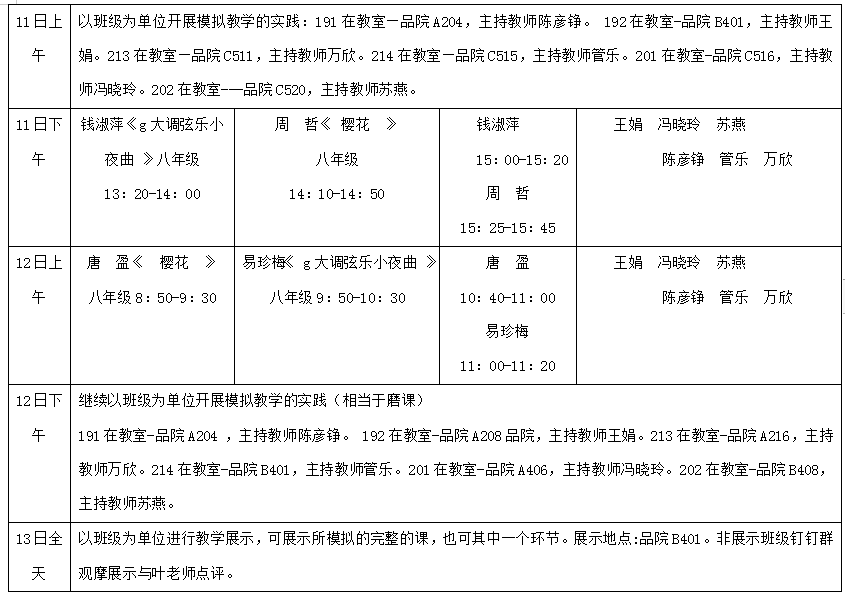 音乐系5月11-13日见习安排