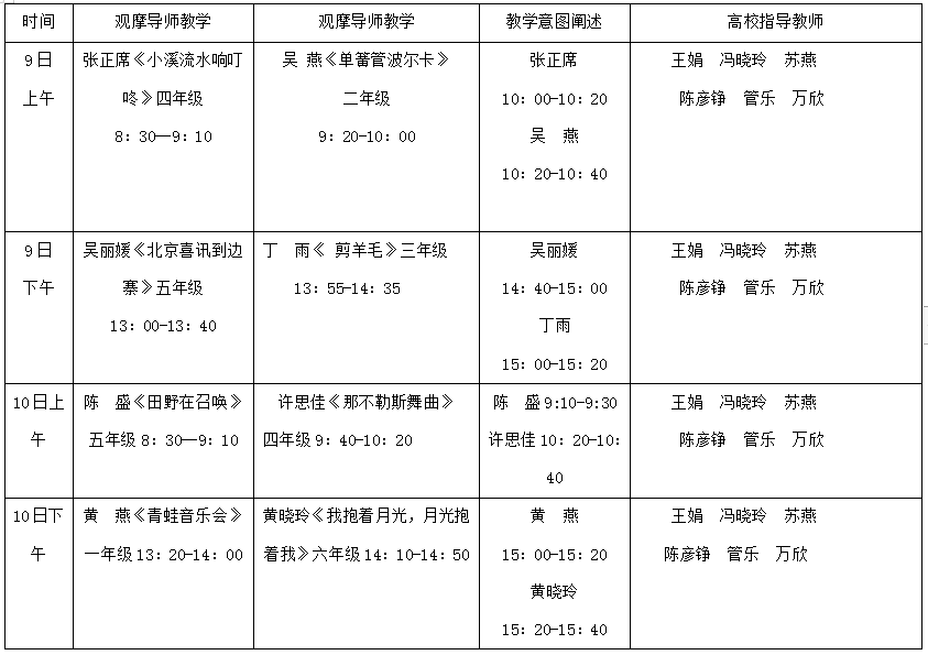 音乐系5月9-10日见习安排