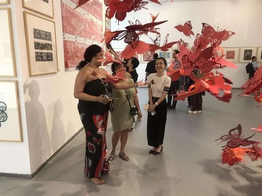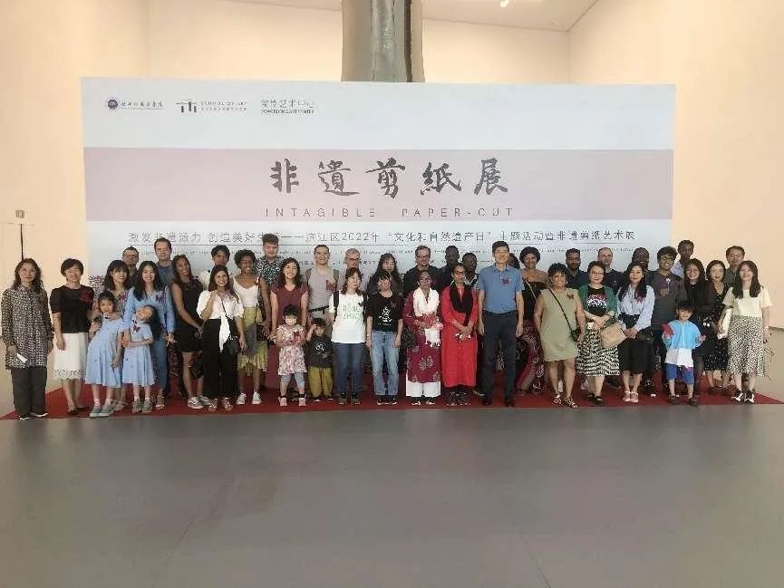 特邀浙江省人民对外协会组织国际友人参观“激发非遗活力 创造美好生活”非遗剪纸艺术展。省友协专职副会长邢绘东、麦田影院