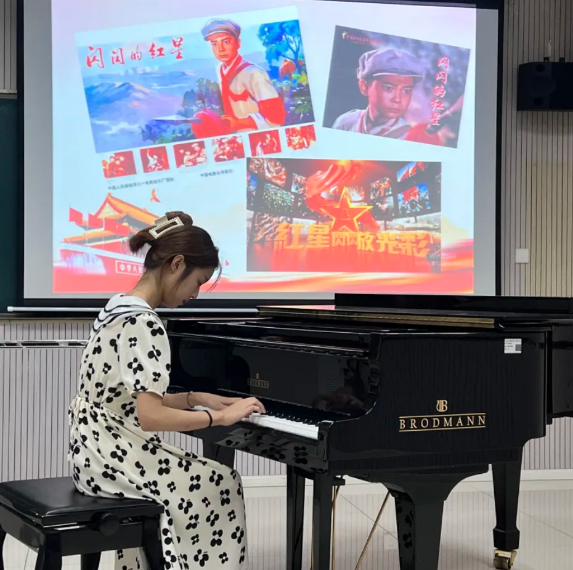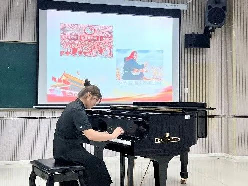 本次党课非传统意义上的课堂讲授,而是结合艺术专业教学特色,以钢琴弹奏的形式,通过对中国传统经典音乐作品的演奏、讲解,让听众、观众了解我们党、我们国家一路走来的不易、体会如今和平盛世的美好,感悟红色音乐带来的力量。