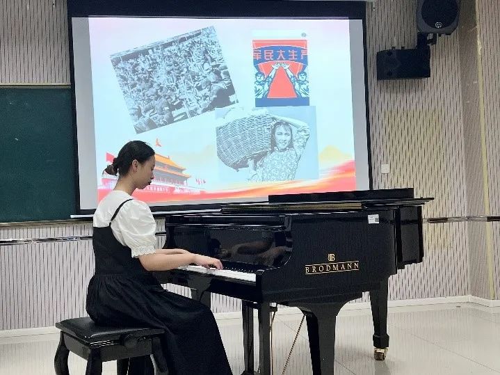 本次党课希望通过音乐作品的欣赏,激发同学们对作品中思政教学资源的感悟与发掘。胡晓红为大家讲述了14首钢琴作品的创作历史背景,以及钢琴作品所表现创作者的爱国主义精神。与同学们回顾了中国共产党百年辉煌历史。