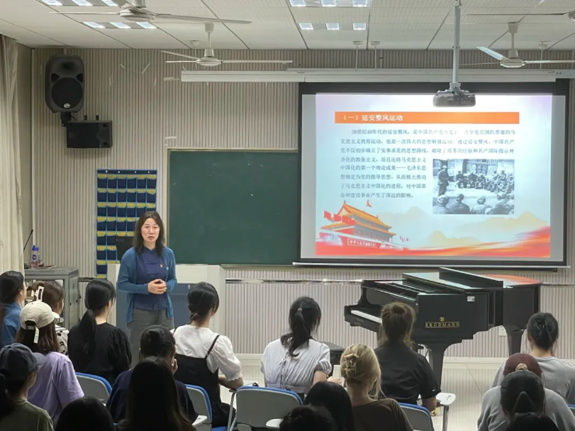 党总支书记胡晓红主讲,音乐系教工党支部书记万欣、宣传委员吴岢霏,音乐系、美术系入党积极分子等20余人参与活动。