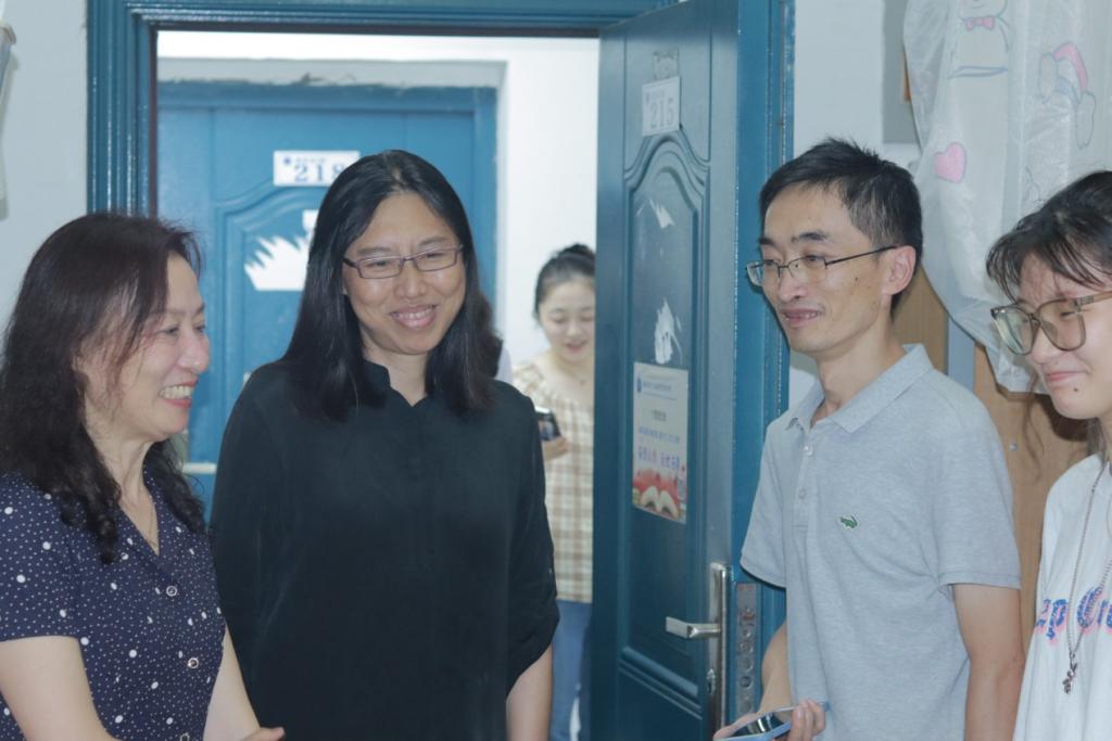 院长李敏、党总支书记胡晓红、党总支副书记李海波在各年级辅导员的陪同下深入学生宿舍,走访慰问返校的学子们.