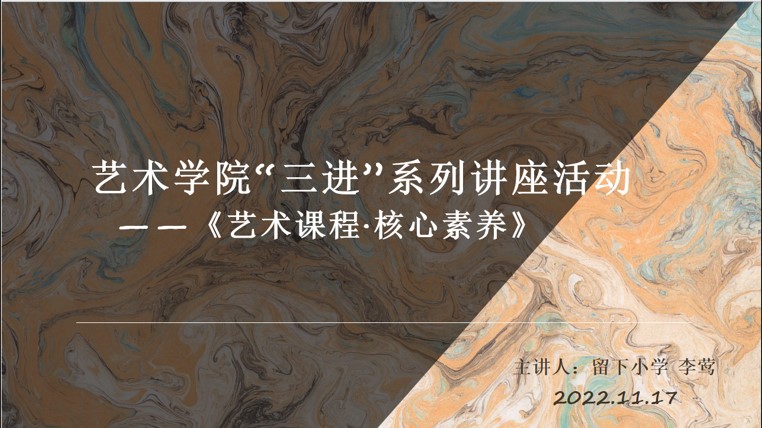 “三进”系列讲座之《艺术课程·核心素养》。本次讲座由杭州市留下小学音乐教研组长,一级教师,西湖区优秀教师李莺主讲。