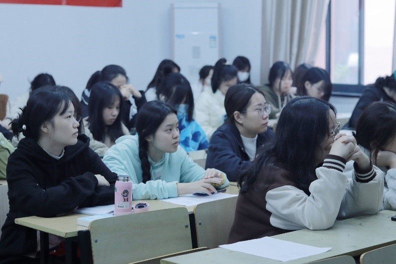 结合班主任工作实例,李莺老师为同学们讲解了艺术课程的核心素养,包括审美感知、艺术表现、创意实践和文化理解。同时李老师推荐同学们课后仔细阅读《艺术课程标准》,从而更系统地学习相关概念。在互动环节,同学们积极提问,李老师一一耐心解答。