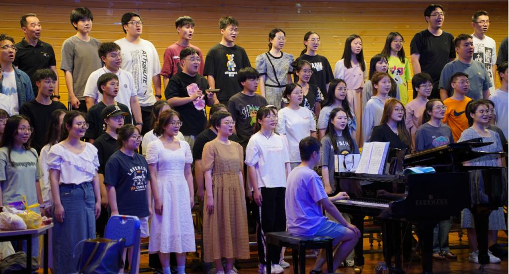 徐勇首先对合唱团同学们在盛夏酷暑的天气克服困难参加排练表示肯定,并对合唱团的老师和同学表示了诚挚的慰问。