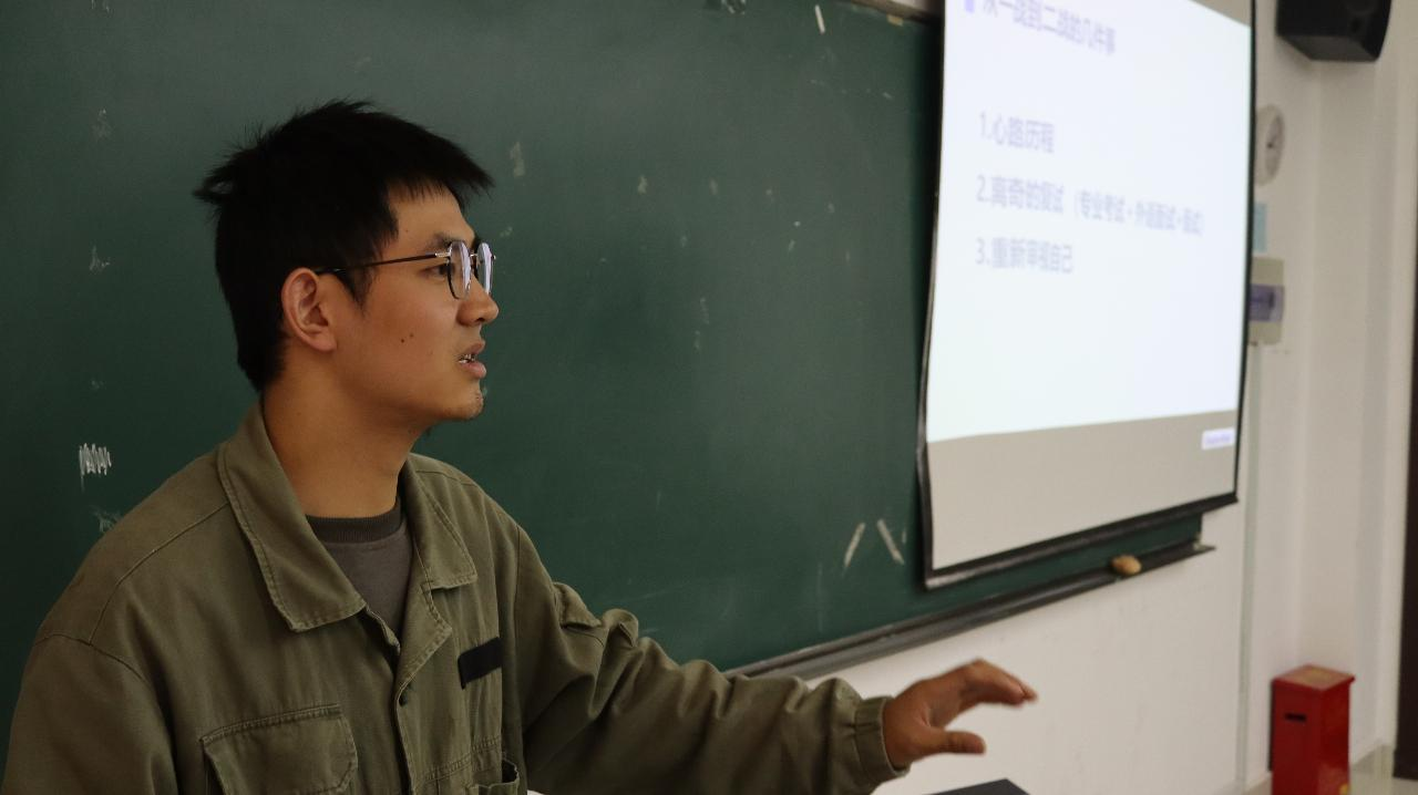 邀请了优秀校友蒋一鸣、优秀校友徐子雅在品院A208教室开展了考研考编经验分享会。