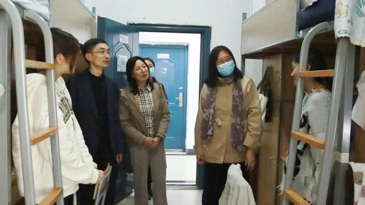 院长李敏、党总支书记胡晓红、党总支副书记李海波在新生辅导员梅书敏的陪同下深入学生宿舍,走访了部分新生寝室。