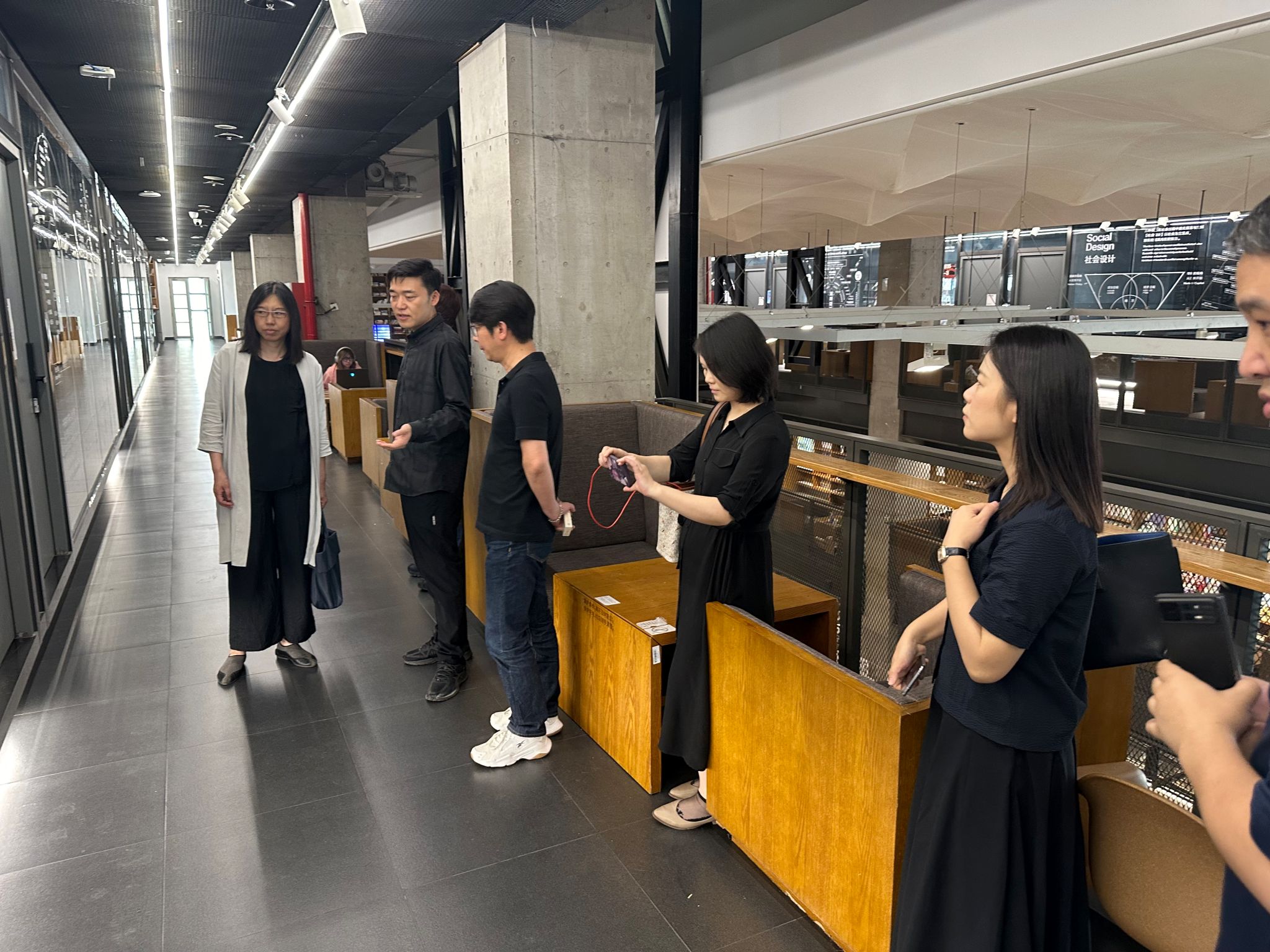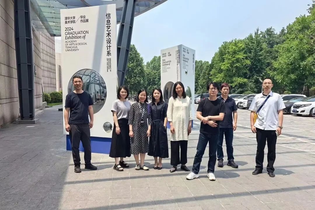6月6日上午,调研团队抵达清华大学美术学院。在艺术史论系郭秋慧教授的陪同下,调研团队参观了正在进行的研究生毕业展。