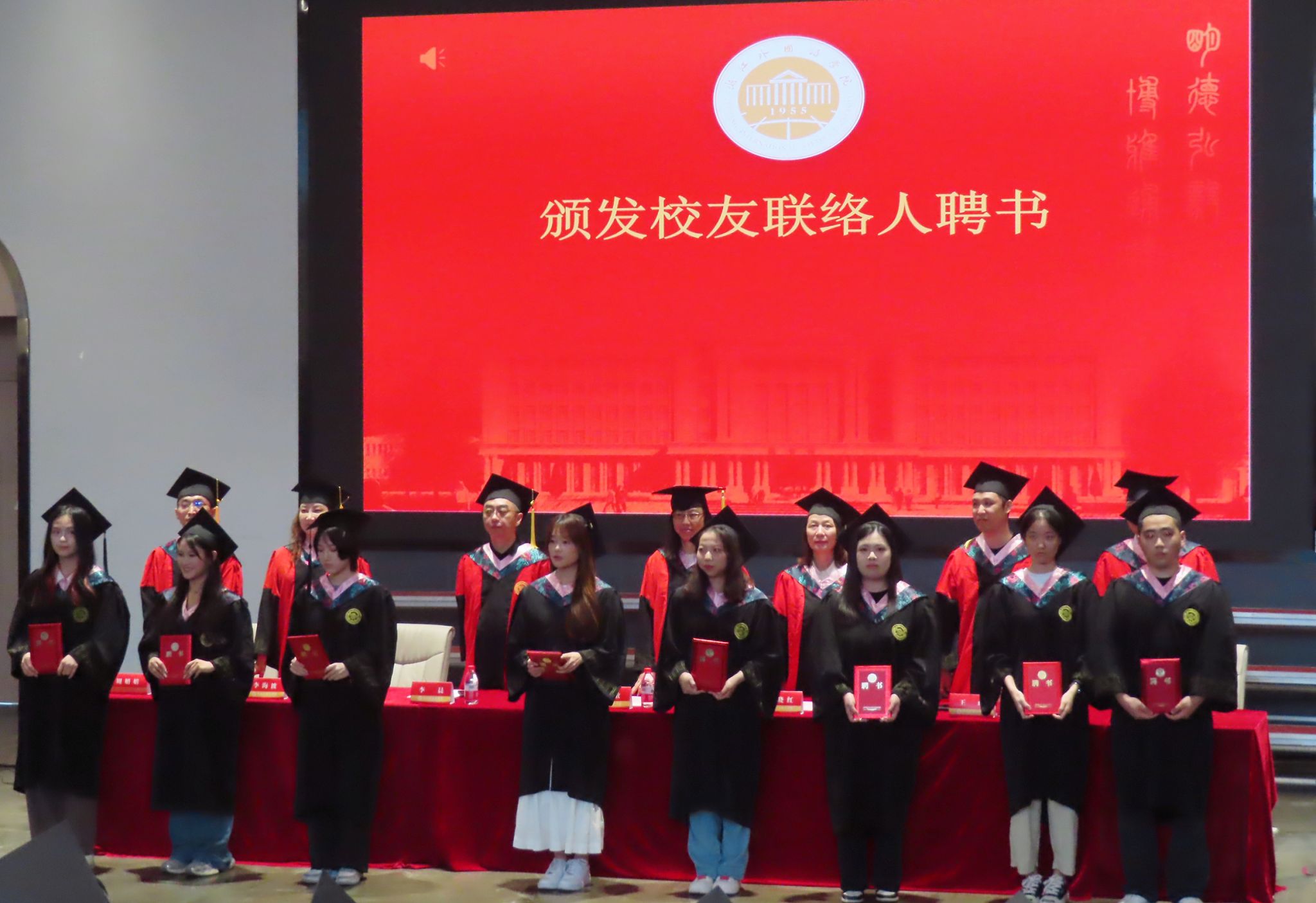 学院领导、教授代表为班长颁发校友联络人聘书。