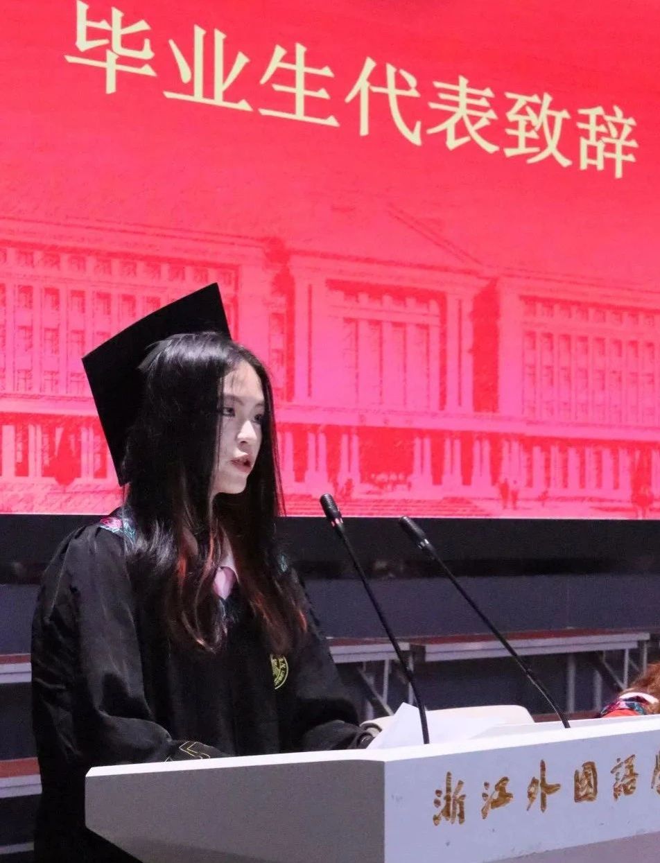 20美术2班屠斯语同学作为毕业生代表发言,她回顾了入学以来的大学时光,表达了对老师的感恩之情并代表全体毕业生表示将铭记母校的教诲,牢记麦田影院