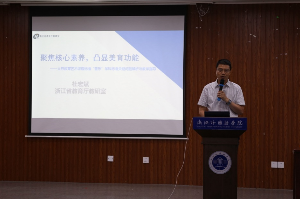 5月23日,浙江省音乐教研员、浙江省特级教师杜宏斌教授作线下专家讲座《“音乐”学科标准解读及教学建议》。义务教育艺术课程标准修订核心组成员,为学生带来最权威的解读与教学引领。