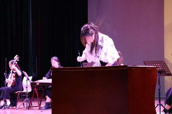 悠扬的民乐声响起,二胡的婉转、琵琶的清脆、笛子的悠扬等各种乐器的声音交织在一起,奏响了一曲动人心弦的乐章。与此同时,一旁的书案上,墨香四溢,毛笔轻舞,书法与音乐相得益彰,共绘一幅文化交融的绝美画卷。