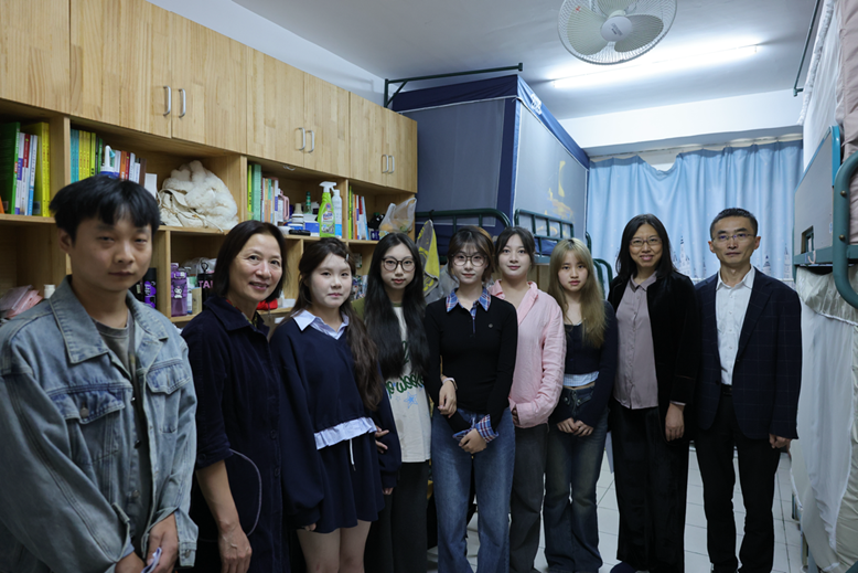 新生的宿舍:雅仪6-404,413,雅正6-304,305进行了走访,了解和关心学生们的生活与学习。