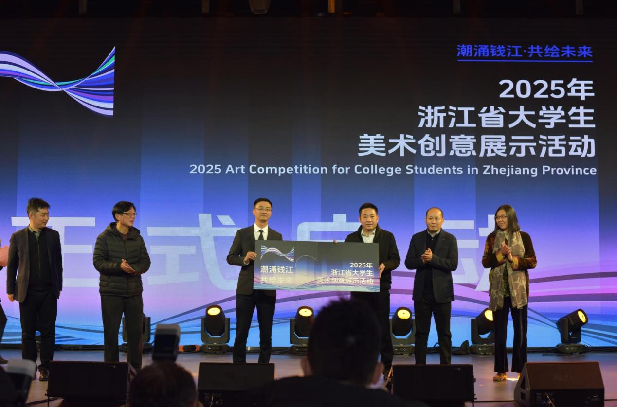 最后,在姚旻、杨明松、沈叶庆、李敏、於丰等领导的共同见证下,协会副秘书长李永正宣布 "潮涌钱江・共绘未来" 大学生美术创意展示活动正式启动。