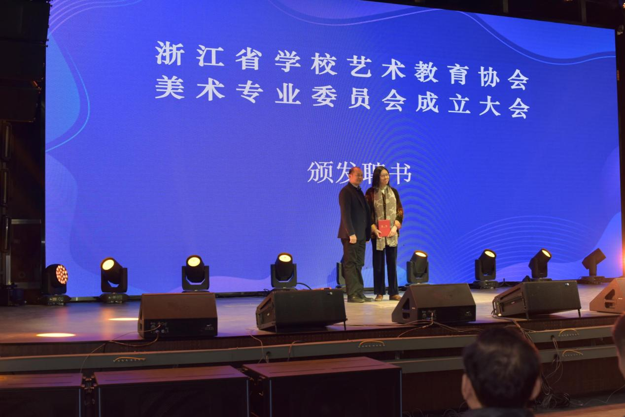 会议表决通过《浙江省学校艺术教育协会美术专业委员会章程》,选举产生美术专委会主任、副主任、秘书长、副秘书长、常务理事。浙江省学校艺术教育协会副秘书长李永正宣读任命文件。沈叶庆、李永正为美术专委会新一届委员颁发聘书。