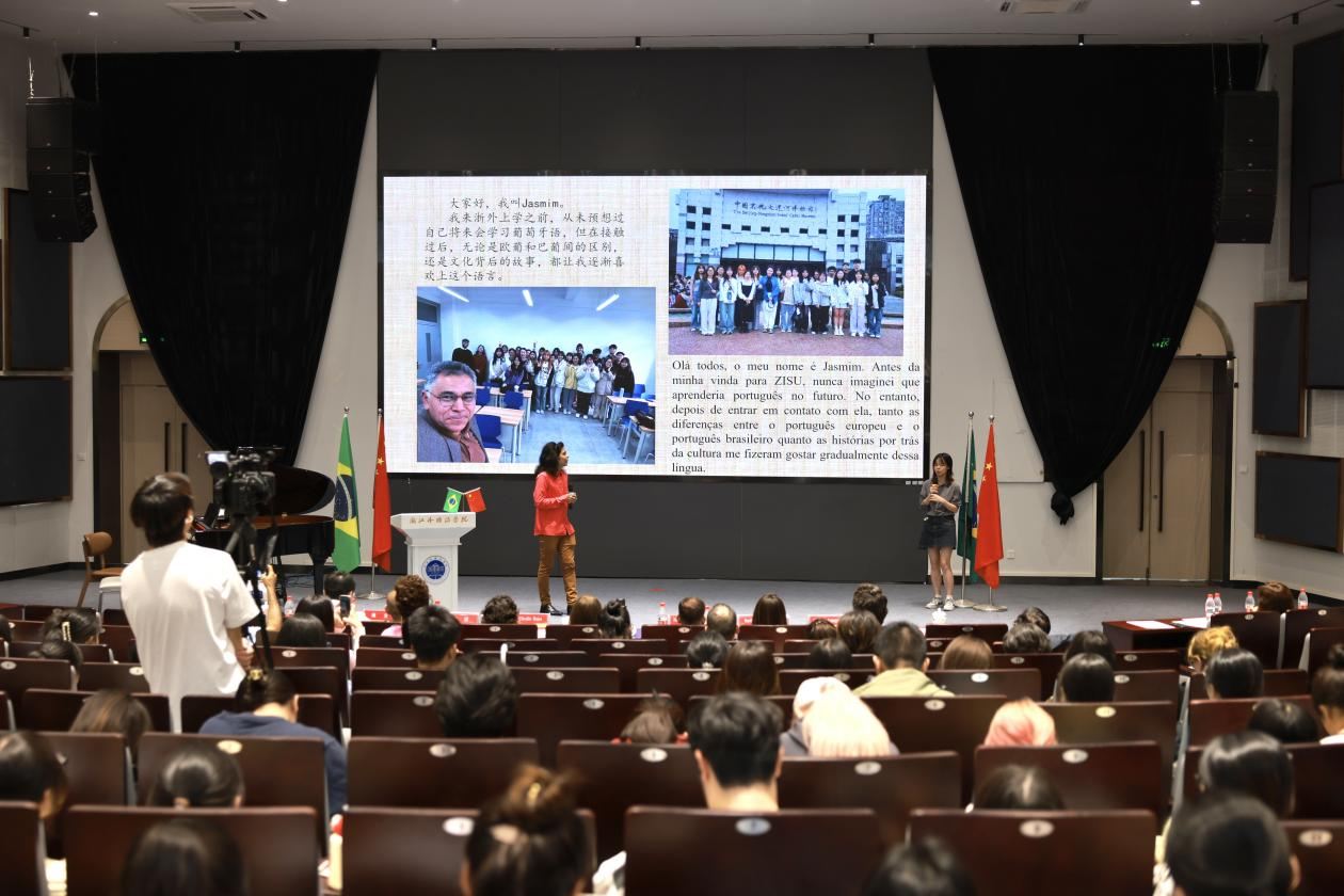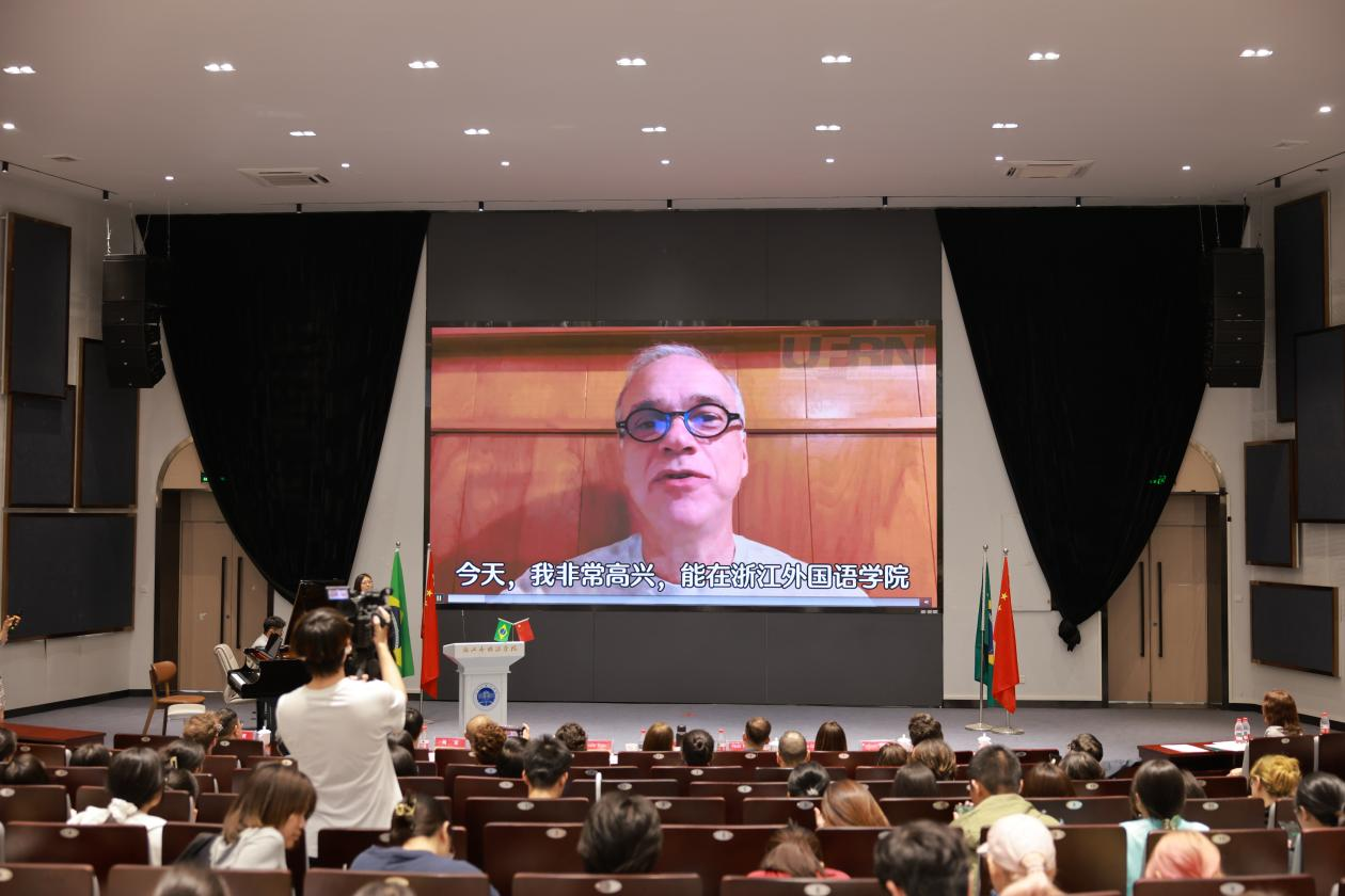 北里奥格兰德联邦大学校长 Daniel Melo也通过视频对本次活动表示了热烈的祝贺,希望未来浙外和北里奥格兰德联邦大学可以有更紧密的合作。留学生Denzel与西语学院学生夏逸佳结合自身在浙外结为语伴的亲身经历,与大家分享了中巴学生文化交流碰撞的奇妙故事。