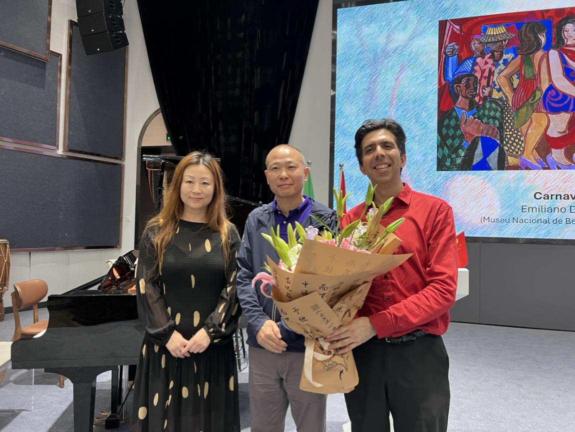外籍教师戚楠博士、钢琴家Durval Cesetti教授在此举办了一场“午后巴西:文化与音乐之旅”盛典活动。活动包括戚楠博士的巴西音乐文化历史讲座和Durval Cesetti教授、戚楠博士的钢琴演奏音乐会。两位艺术家以音乐、舞蹈为纽带,深入探索了多元的巴西文化历史,为师生呈现了一场巴西音乐视听与知识的双重艺术盛宴。副校长、党委委员张梁,副校长、党委委员姚旻出席活动并致辞,智利前大使Claudio Rojas,巴西驻沪领事馆文化领事 Paulo Henrique 保罗·恩里克,巴西驻沪领事馆媒体副领事 Marília Cristina作为外方代表出席本次活动。国际合作处处长陶国霞与麦田影院