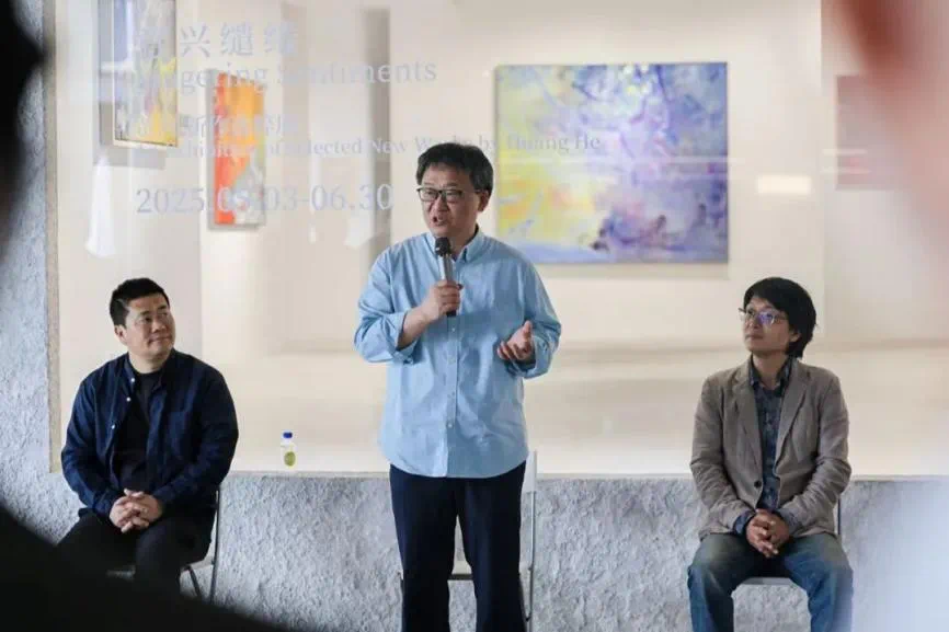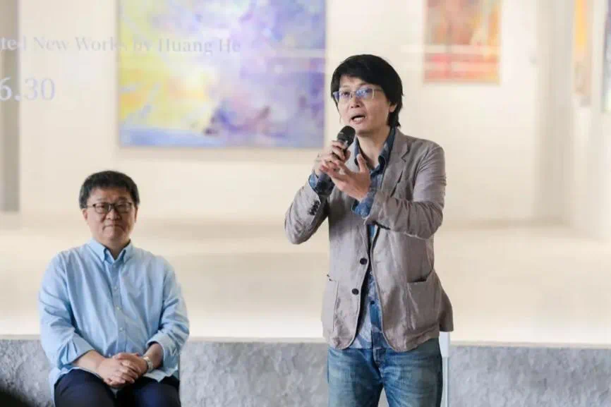 黄河向到场的嘉宾表达了衷心的感谢,尤其是远道而来的朋友。在回顾自己过往的一些个展经历时,也是在宁波,在十年前就曾经和今天也在场的艺术家马琦举办过一次双个展,说明和宁波的良好艺术生态有密切的联系。黄河特别郑重的感谢本次展览的学术主持丁宁教授,从布展空间的确认,到整个展览顺利举办的过程,丁宁教授都给予大力支持。最后黄河也对出入艺术的整个团队对本次展览的倾力付出表达了谢意。
