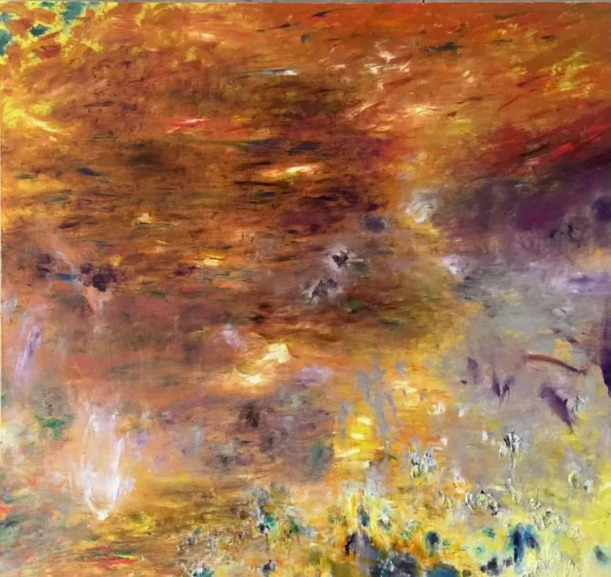 丁宁认为黄河的作品,基于一闪而过的偶然时间、极力的追赶、一直变化的过程,寻求最终呈现画面后,出乎他自身的预料。他用了一个非常郑重其事的一种方式表达偶然的幸会。在对待画面,因为这种层层叠叠涂抹的方式,色彩绚烂华丽,增加绘画解读的多重性,有美丽的停驻,有瞬间一现的灵光,走出纯粹的叙事性的,他从中表达的一个空间,画家从中得到某些的东西,连自己都觉得意外,这是作画的一个非常理想的一个状态。丁宁先生觉得,这是画家黄河的艺术成长当中进行时的一个状态,黄河的画没有拒斥观众的接近,画面让你靠近与体会,像一杯水,捕捉住了杯子倒满了以后的自然溢出的自然而然的那个瞬间。