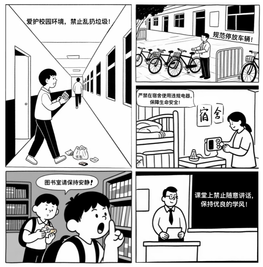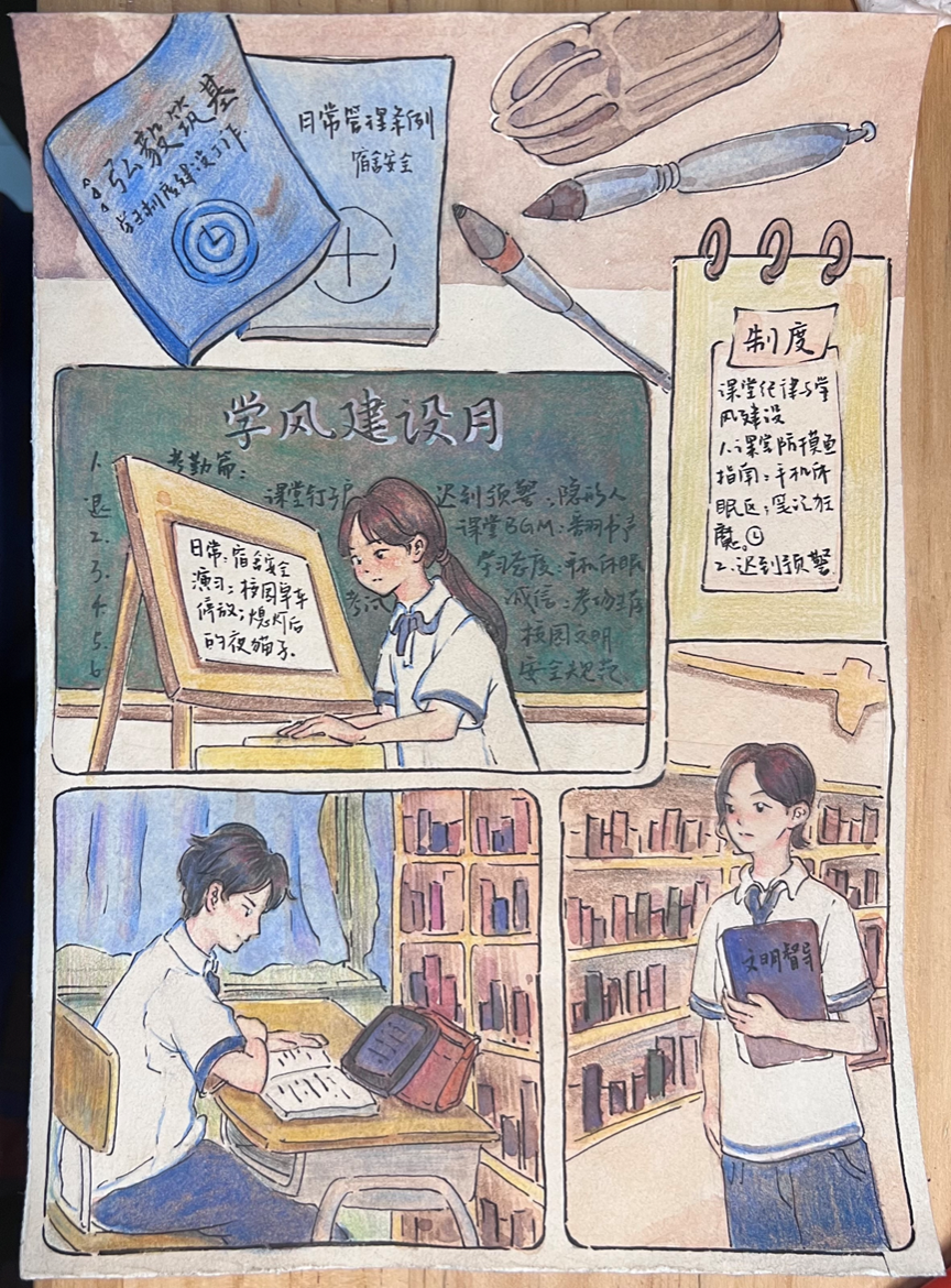 团委、“弘毅筑基”学生制度建设工作室联合举办的校园制度主题漫画大赛中,同学们化身灵感达人,用画笔解构规则,用色彩传递文明,让一条条校园制度 “活” 成了趣味横生的故事。最终脱颖而出的佳作,不仅是对校园文化的精彩诠释,更是同学们独特视角与无限创造力的见证!现在,让我们一同揭晓这份满载惊喜与才华的获奖名单,感受笔尖下的校园制度新风采!