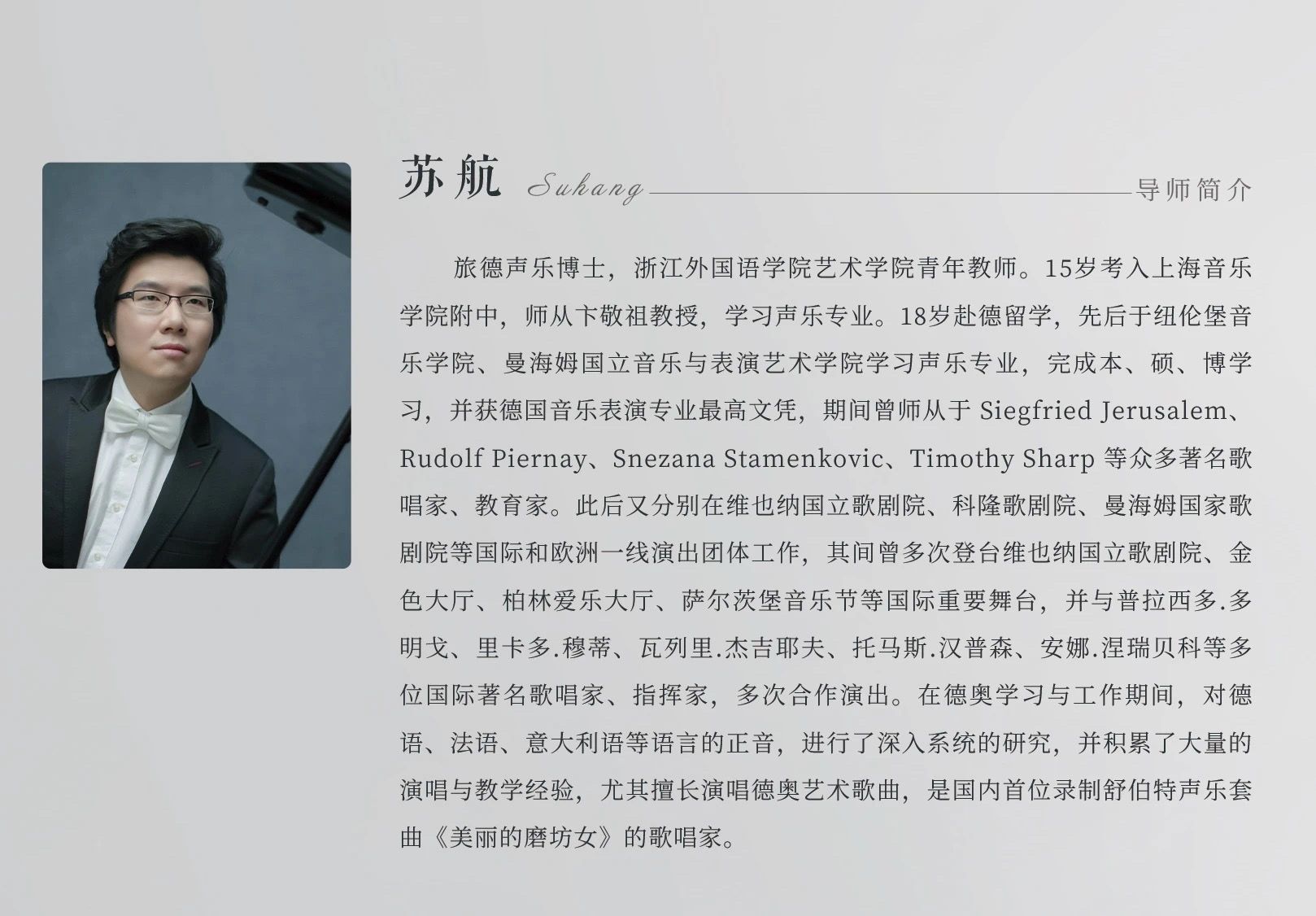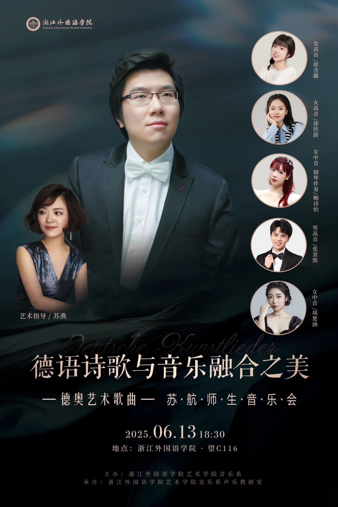 青年教师,旅德声乐博士苏航老师,将与学生们于望C116音乐厅呈现“德语诗歌与音乐融合之美”音乐会。值此麦田影院