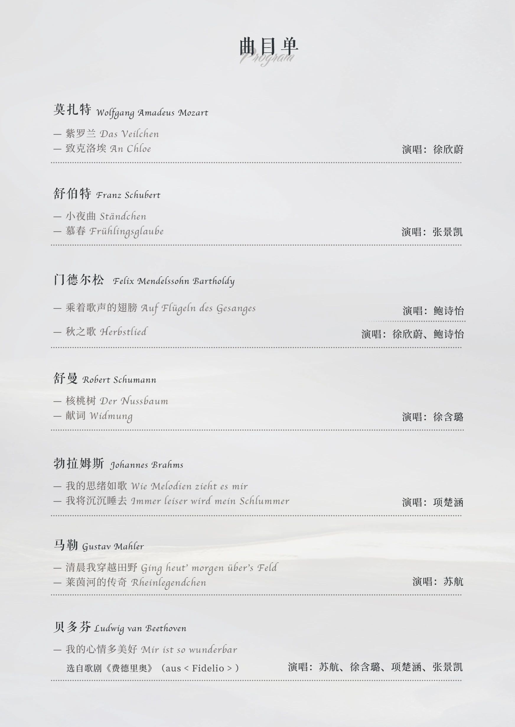 艺术歌曲,是诗歌与音乐的结合,诗人用文字凝练情感,音乐家以旋律赋予其生命——人声与钢琴的默契交融,将诗歌的意境升华为乐章,让文字与音符在时空中共振。这种独特的艺术形式,既是文学与音乐的对话,也是理性与感性的和谐共生。