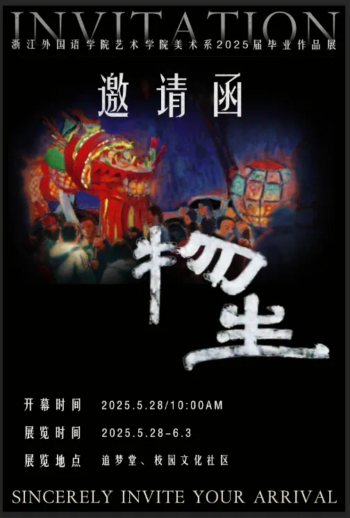 美术系2025届毕业作品展开幕式,现诚挚邀请阁下拨冗出席,不胜感激!