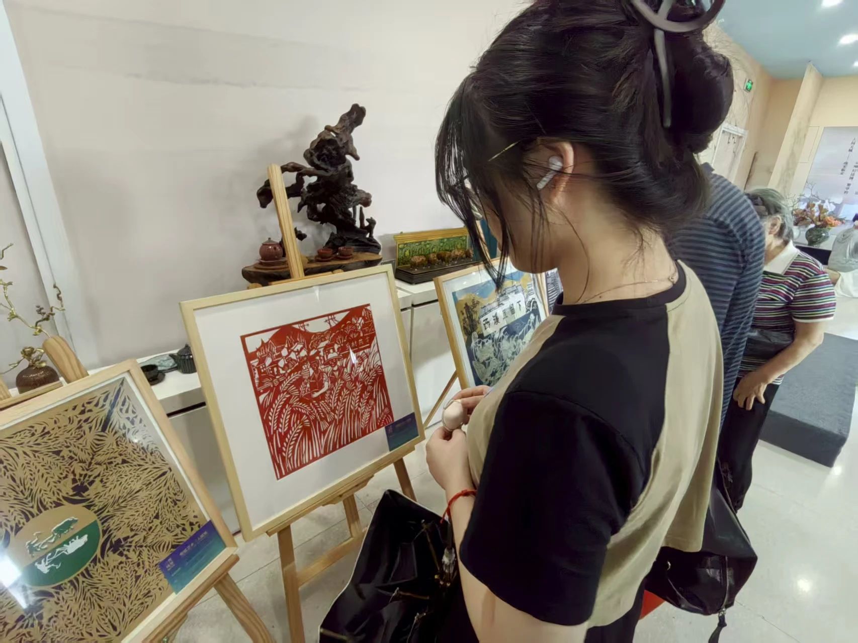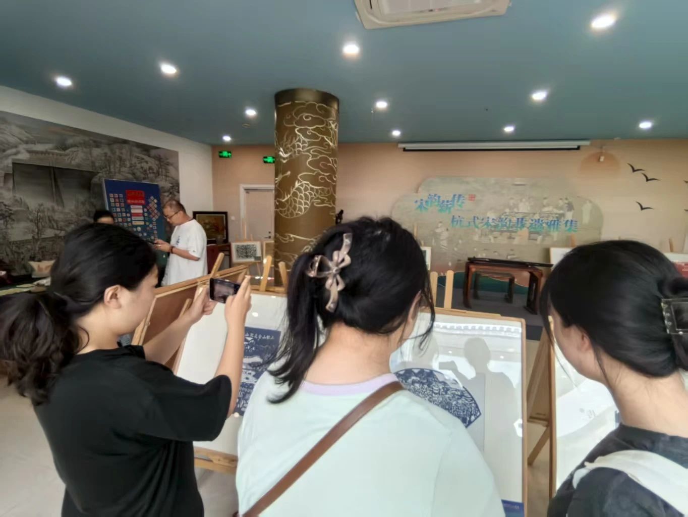 眼界的震撼:上城区非遗展示中心的展览成为实践的高潮。面对从古朴传统到大胆创新的剪纸精品,成员们深受震撼。傅千语感叹展览“让我开阔眼界,感受到剪纸艺术的博大精深与时代创新”,潘佳琳则被其“生命力”所折服。传承人坚守的故事更如明灯,照亮了非遗传承之路的价值与意义。