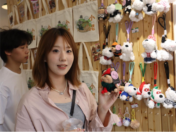 实践团首访村非遗馆,精细竹篮、雅致灯罩等物件无声诉说着“国家级非物质文化遗产”嵊州竹编的千年匠心。更可贵的是,小昆村已开创“竹编体验工坊”,让游客跟随非遗工作者学习简易竹编并带走作品。这种“体验式传承”模式,使非遗从静态展示走向动态互动。正如安冬丽所悟:“我们设计文创时,得把这种‘互动感’融进去。”非遗由此转化为可感可触的文化符号,为后续创意转化奠定坚实根基。