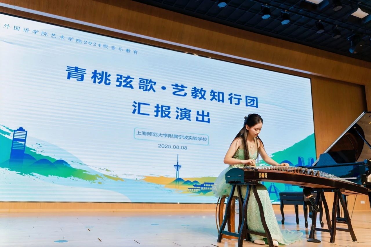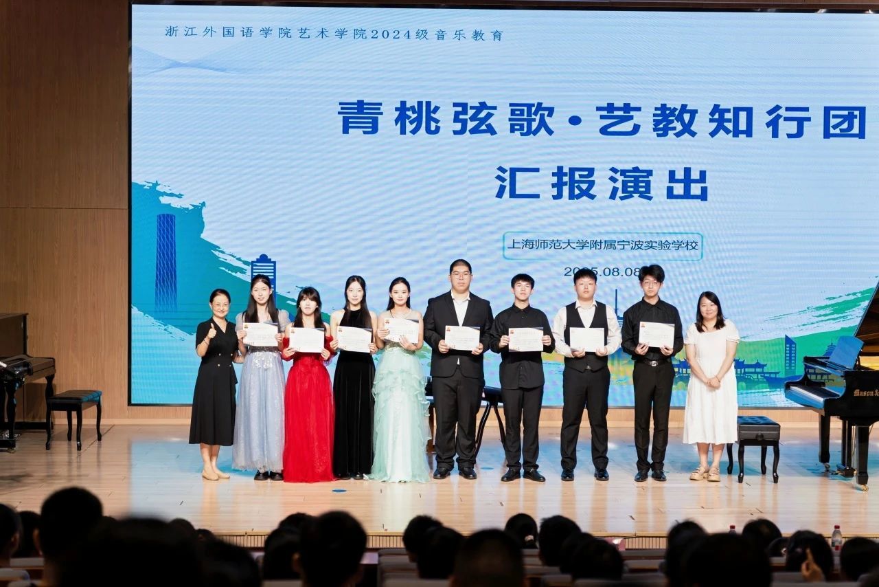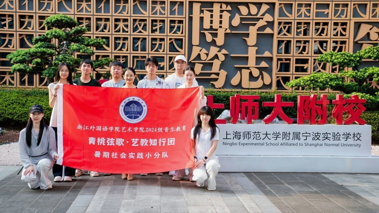 “青桃弦歌·艺教知行团”以“廉洁从教”为核心主题,赴上海师范大学附属宁波实验学校(宁波奉化)开展暑期社会实践。团队8名音乐师范专业学生,在万欣老师的带领下,深度融入上海师范大学附属宁波实验学校暑期托管班,通过“双师协作+文化融合”模式,实现师范能力孵化与在地美育创新双轨并行。