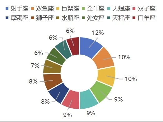 在25级艺术小萌新中,星座人数TOP1的是射手座。令人惊讶的是,双鱼座、巨蟹座的人数并列第二~
