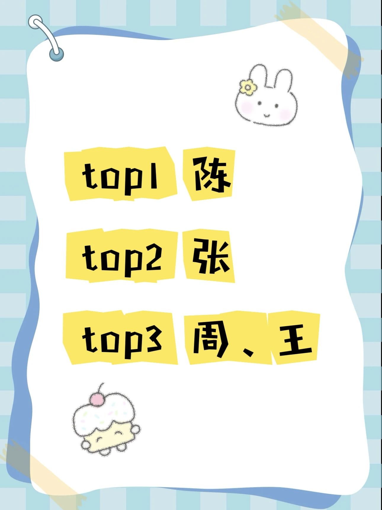 25级艺术小萌新姓氏人数 TOP3分别是陈、张、周、王分别有 22 人、17 人、11 人、11 人。非常有缘的是,有 2 位同学名叫 “chenyu”,同音不同字,真是太巧啦!