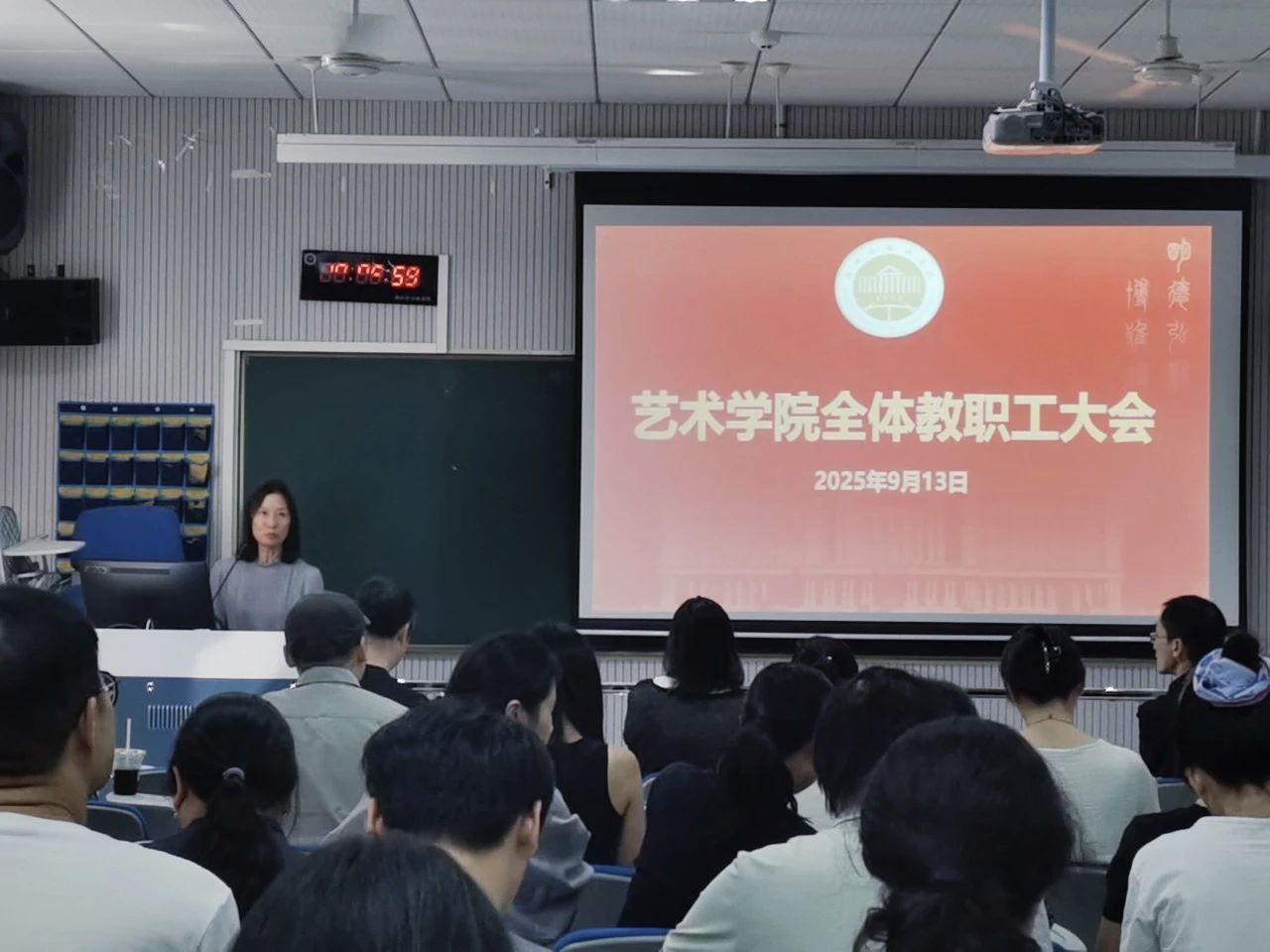 召开新学期全体教职工大会,传达学校近期重要会议精神、总结暑期工作进展,并部署新学期重点任务。会议由学院党委书记胡晓红主持,全体教职员工参加。