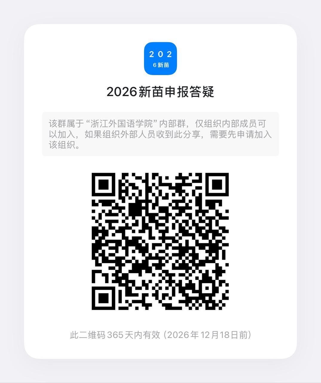 欢迎大家扫描下方的二维码加入“2026年新苗申报答疑群”。申报相关疑问都可以在群里提出我们会及时解答。