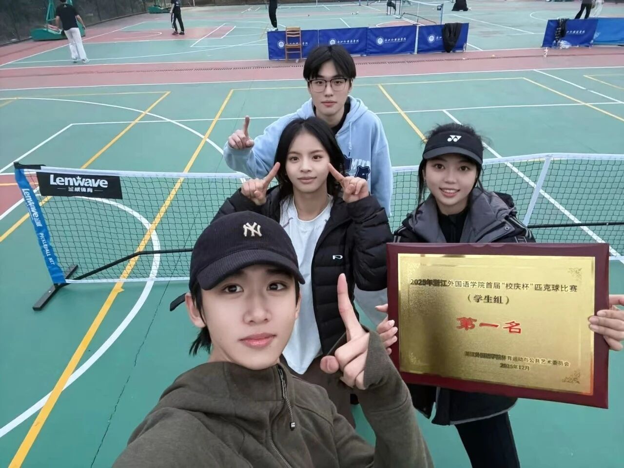 23级艺科3班安冬雨,23级艺科3班郭津妤,23级艺科4班冯康,24级艺科1班葛昊毅四位同学在比赛阶段稳扎稳打,灵活运用发球、截击、扣杀等匹克球技术,凭借稳定的发挥和较少的失误取胜。