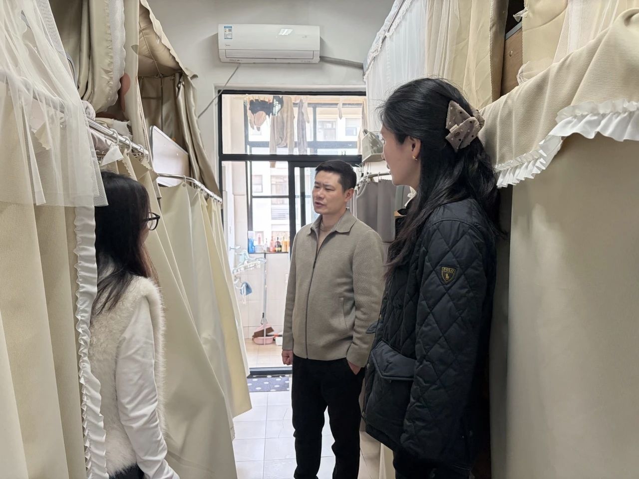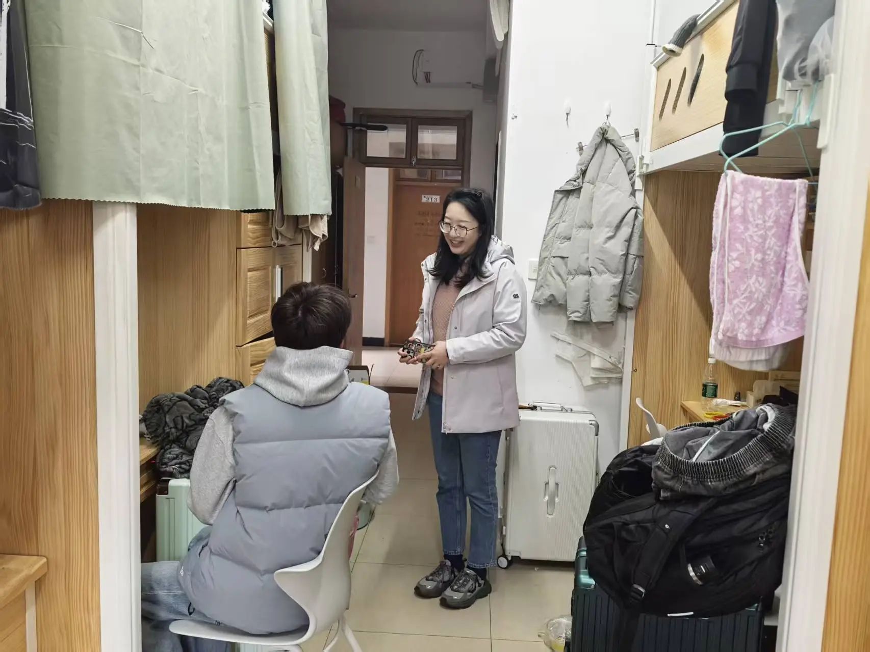 在大三学生寝室,丰书记格外关心同学们的就业意向,结合当前就业形势与专业特点,为大家提供了宝贵的指导经验和职业发展建议,勉励同学们尽早明确目标、夯实专业基础、提升综合竞争力,为未来升学就业做好充分准备。