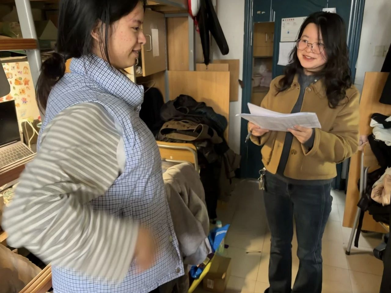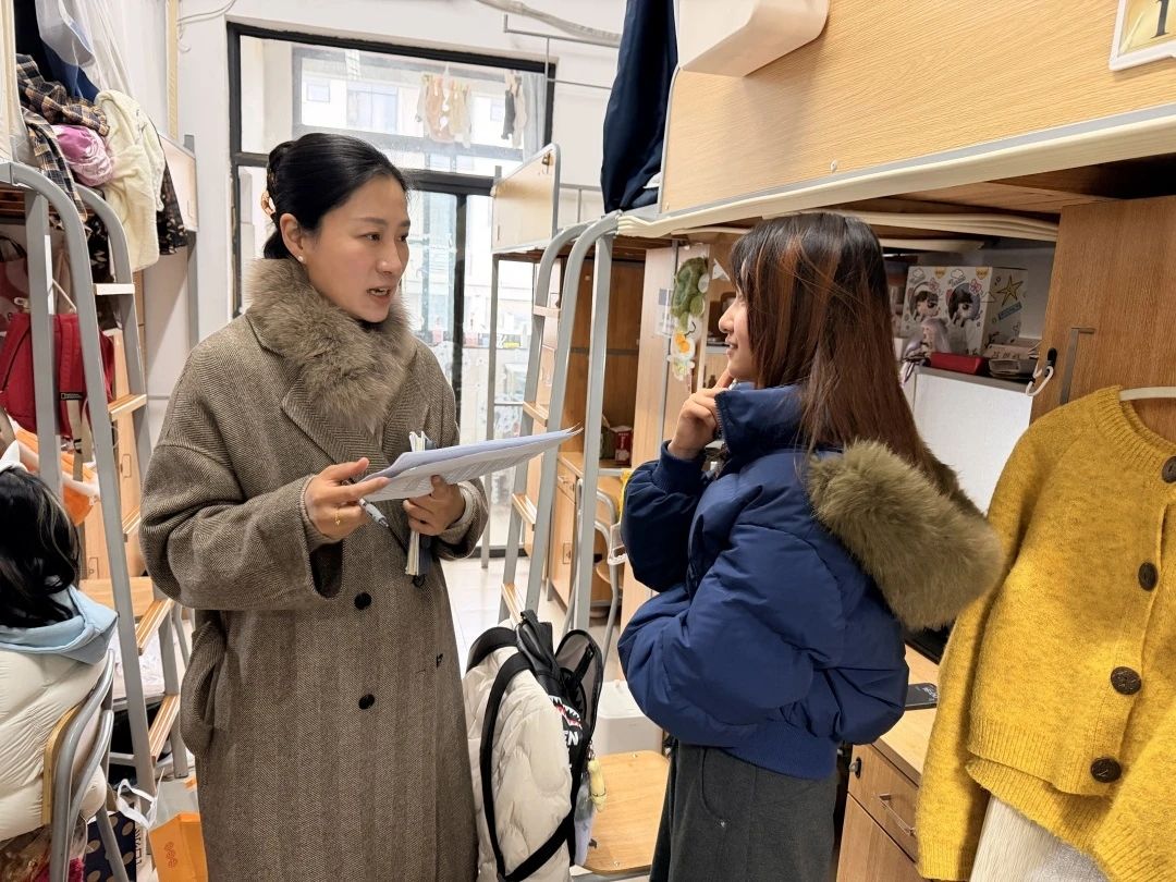各年级辅导员、班主任积极响应学院号召,在开学两周内深入所带班级每一间学生寝室。走访期间,老师们围绕学生思想动态、学习适应、生活需求等方面与学生深入交流,细致了解同学们的返校适应状况和新学期规划,做好思想引导与人文关怀。同时,老师们严格按照学校要求,重点排查寝室违规电器、私拉乱接电线、充电器长期不拔等用电安全隐患。在卫生检查方面,老师们督促学生保持寝室整洁,注意通风换气,引导大家自觉养成良好生活习惯,共同维护整洁、舒适、安全的住宿环境。