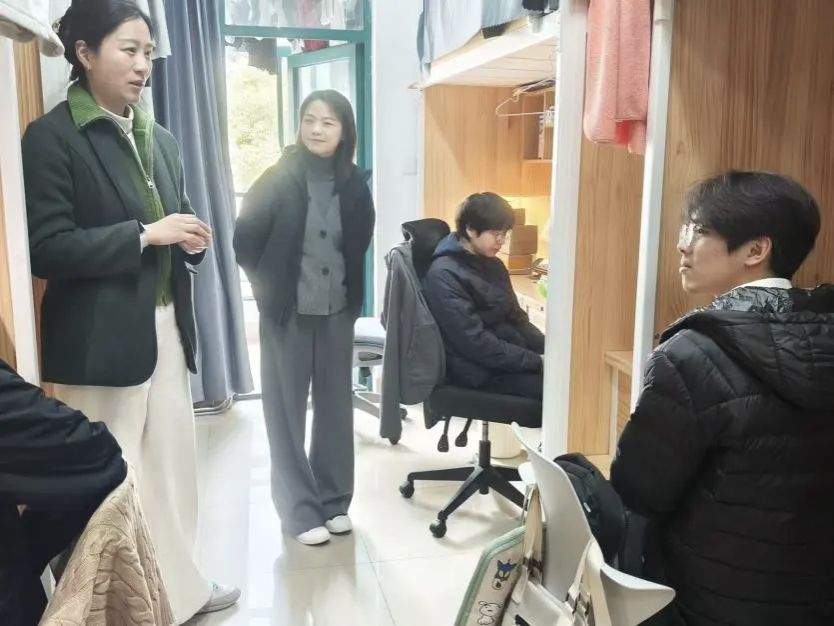 走访过程中,丰翔龙书记、陈澄副书记与同学们进行了亲切的交流,耐心倾听大家在学习生活中遇到的实际困难与建议并叮嘱同学们要珍惜大学时光,互帮互助,以饱满的精神状态投入到新学期的学习生活中。