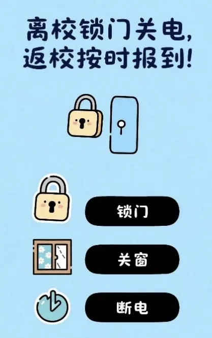 2. 离校前仔细整理宿舍,切断宿舍总电源或拔掉充电器、饮水机、电脑等电器插头,杜绝用电隐患;关好门窗、阳台门,妥善保管个人贵重物品,现金、电脑、首饰等随身带走,防止丢失或被盗。